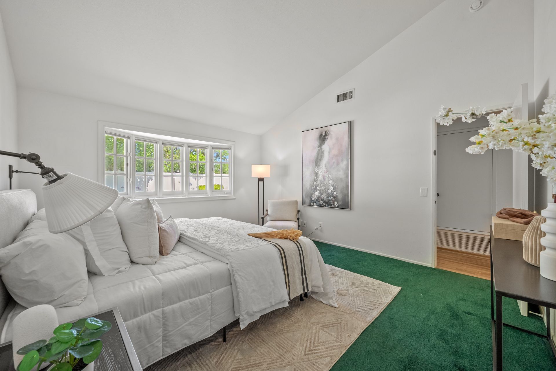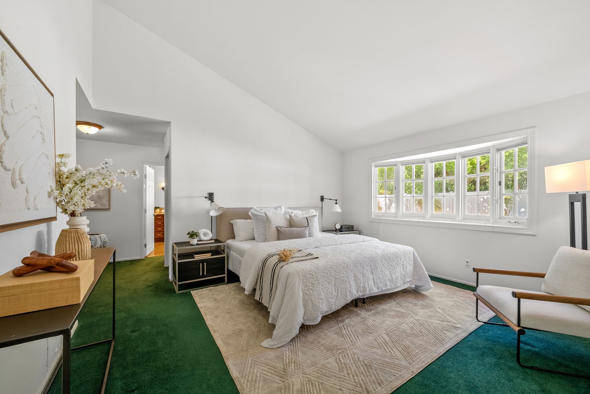 The primary suite is a true haven, with vaulted ceilings, an oversized closet, a dressing area, and a freshly remodeled en-suite bathroom. Three additional bedrooms, a second full bath, and a laundry room complete the well-designed layout.