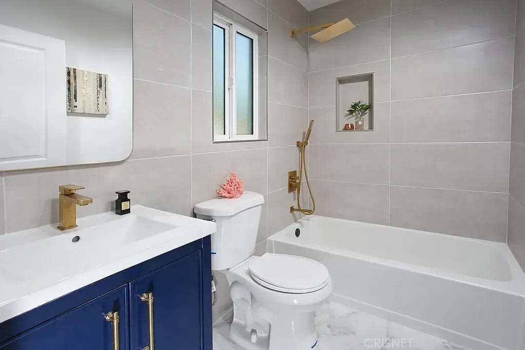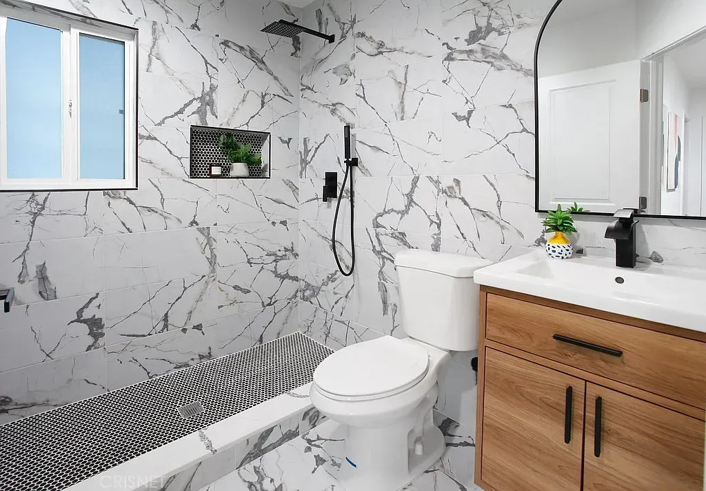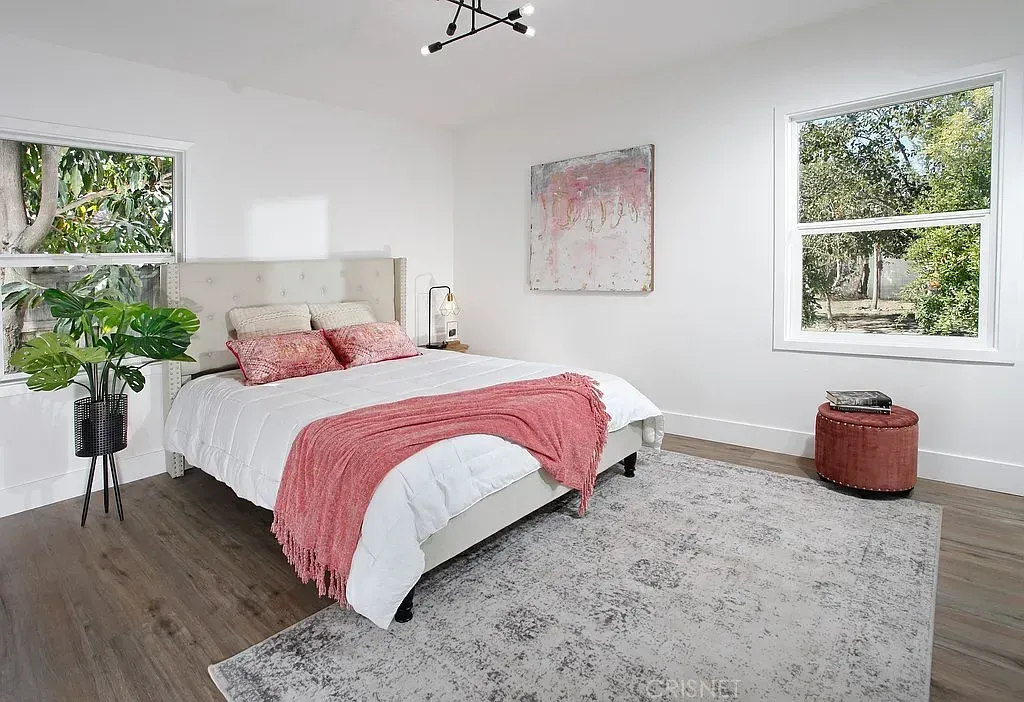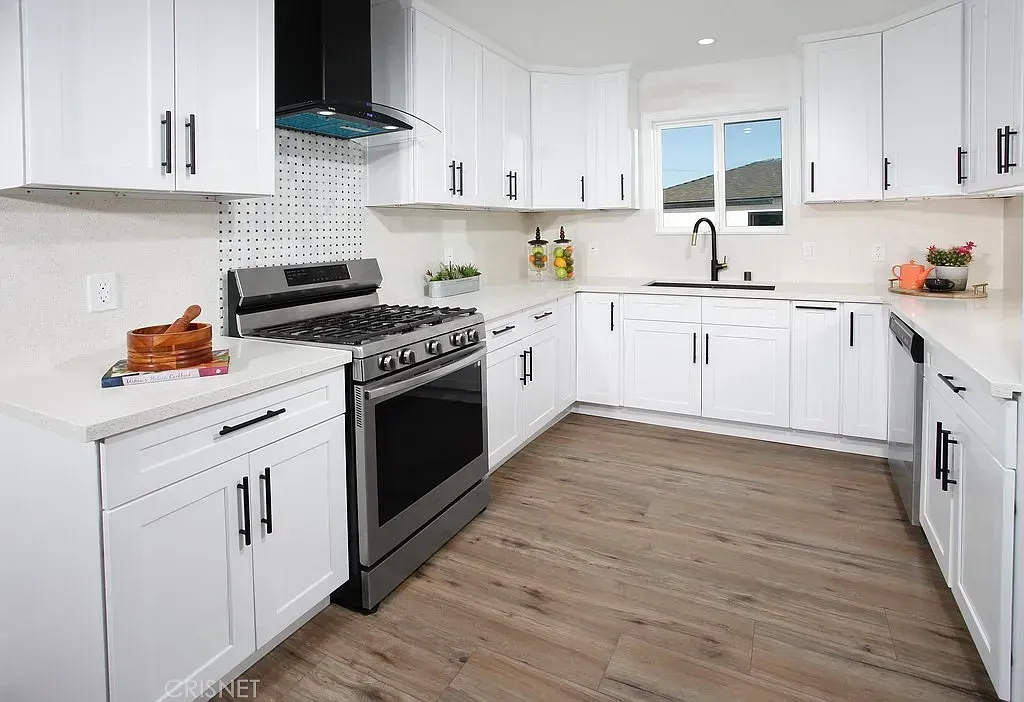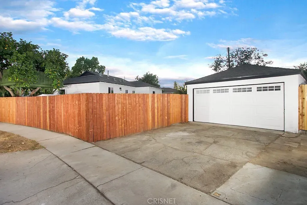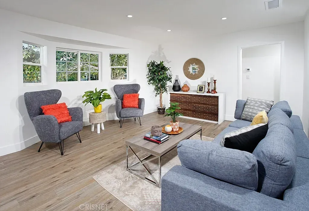 PERFECT CONFIGURATION FOR AN ADU AND ON A CORNER LOT WITH DETACHED GARAGE! Open concept floor plan that is highlighted by a multitude of new fine finishes. Here are just a few of its many fine features: ALL ***NEW***: Exterior- roof, exterior paint, front landscaping, matte black industrial porch light, wood fence and gate, PEX and copper plumbing, sewer lines, main sewer line under home (clay) checked and clear, 200-amp electrical panel, AO Smith air conditioning unit, new and newer dual pane windows. Throughout-smooth ceilings, contemporary front door with glass insert and black hardware, LED recessed lights, light fixtures, AO air conditioning unit, A/C air vents, Honeywell thermostat, 200-amp electrical panel, electrical wiring, Decora light switches/outlets, AO Smith tankless water heater, matte black door hardware, interior paint, wood laminate flooring, wide baseboards. Kitchen-New white shaker cabinets that reach the ceiling, black cabinet hardware, built-in lazy Susans, quartz countertops and backsplash, pull-down faucet, undermount black basin, garbage disposal, stainless-steel 5-burner gas range, ceiling mounted ventilation hood, stainless-steel dishwasher. Primary Suite-matte black industrial light fixture, mirrored wardrobe doors. Primary Bathroom-state-of-the art blue toned vanity. integrated basin, framed dressing mirror, single handle faucets, rain/wand shower heads, bathroom fixtures, designer lighting, custom tiled tub/shower, frameless shower glass, custom tiled walls, commode, marble tiled floors in hexagonal pattern. Guest Bedrooms-mirrored and paneled wardrobe doors. Guest Bathroom-exhaust fan, state-of-the art vanity, integrated vanity basin, matte black framed dressing mirror, matte black single handle faucets, rain/wand shower heads, matte black bathroom fixtures, marble tiled step-in shower, frameless shower glass, commode, marble tiled walls and floors. Laundry Area- Accommodates a stackable washer and dryer. Hallway – Extra wide. Backyard- wood fence, freshly painted garden/storage shed, large treehouse, mature fruit trees including mango, pomegranate and grapefruit. 2 car detached garage- PERFECT CONFIGURATION FOR AN ADU, garage door with remote, pedestrian door. ALL OF THIS AND MORE is only moments away from shopping and dining.