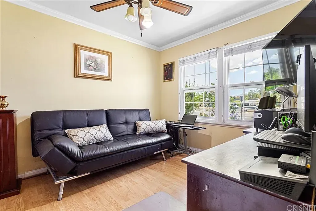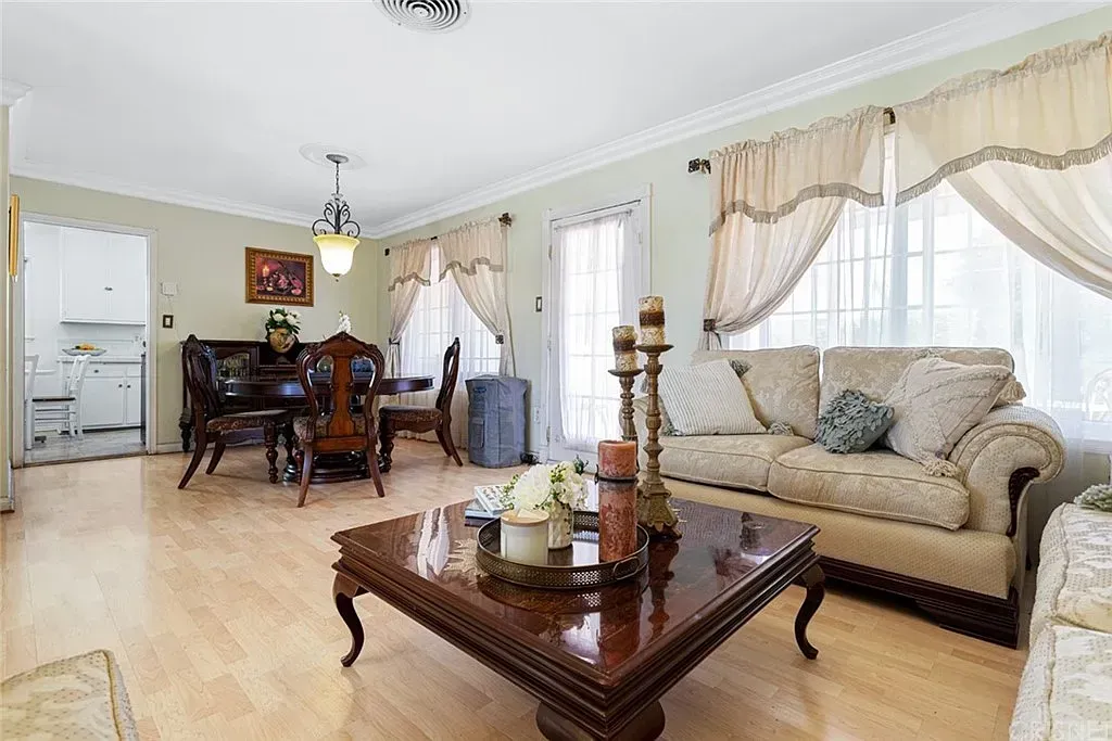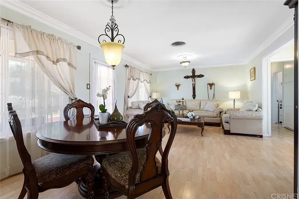 BOOM!! NEW REDUCED PRICE!! Cozy home with lots of potential! Expands approx. 1289 SQFT in a 7446 SQFT lot. Light and bright kitchen with plenty of storage space including a pantry and a breakfast nook, off the kitchen you will find the laundry room with washer and dryer hookups laundry room has access directly to the backyard as well. The Formal Living Room and Dining Room lead you into the large backyard perfect for entertaining! mature trees including some bearing fruit trees, and plenty of space to add a swimming pool if desired. 3 bedrooms, 2 full baths, newer windows, ceiling fans in all the bedrooms and in the kitchen, wood flooring under the current wood laminate, and tile under the linoleum kitchen floor. Crown moldings. A 2-car garage with a private entrance through the back alley is ideal to convert into a guest house for extra space or an ADU for extra income. Situated in a desirable area within walking distance to schools, shops, markets, and to public transportation, etc. , etc. you must see it before it's sold! Buyers to verify all the information and do their own due diligence. Needs updating.