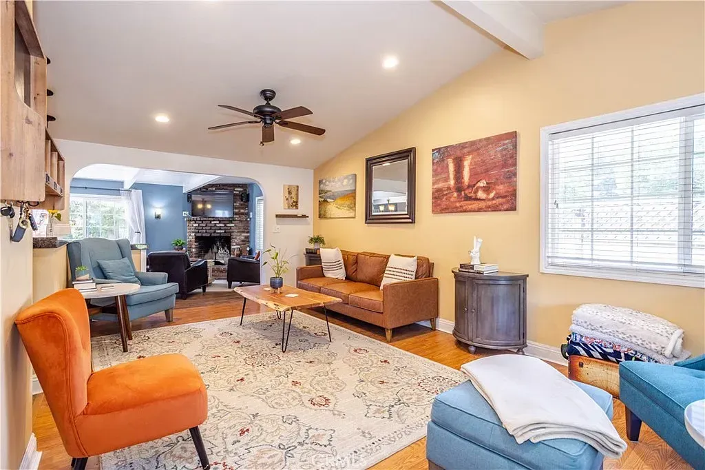 This beautiful home is nestled on a sweeping cul-de-sac corner lot in one of Canyon Country’s most sought-after neighborhoods . Its new white picket/block pillar fencing, lush landscaping, manicured shrubbery, and fresh exterior paint enhances its eye-catch¬ing curb appeal. Open concept floor plan that is in “Move-In-Condition” with a designer paint scheme, recessed lighting, and complementary blend of hardwood, new waterproof vinyl, and carpet flooring, The spacious living room is bathed in natural light and has a high pitched beamed ceiling with fan. The family’s cook is going to truly appreciate the upgraded kitch-en’s abundant custom cabinets, ample granite counters with full back-splash, built-in appliances, and custom pendant lighting. The energy efficient dual pane windows, will help keep your utility bill low. Central heat & air for year-round comfort, You’re going to appreciate and enjoy the backyard’s tall privacy fencing, lush landscaping, entertainer’s patio, and sparkling pool.