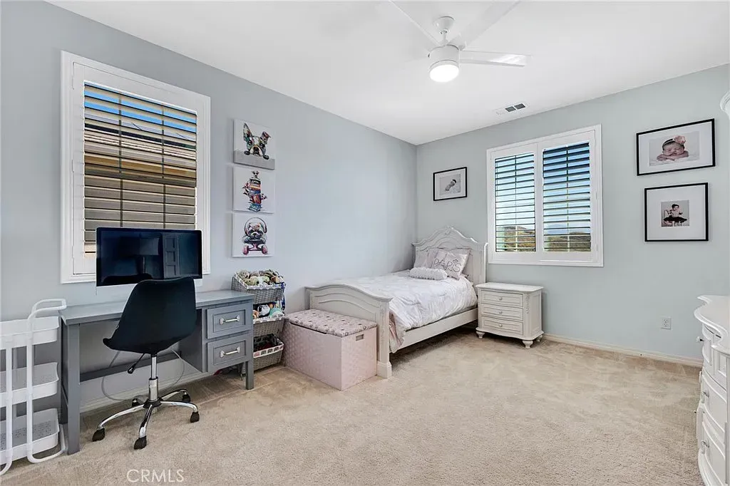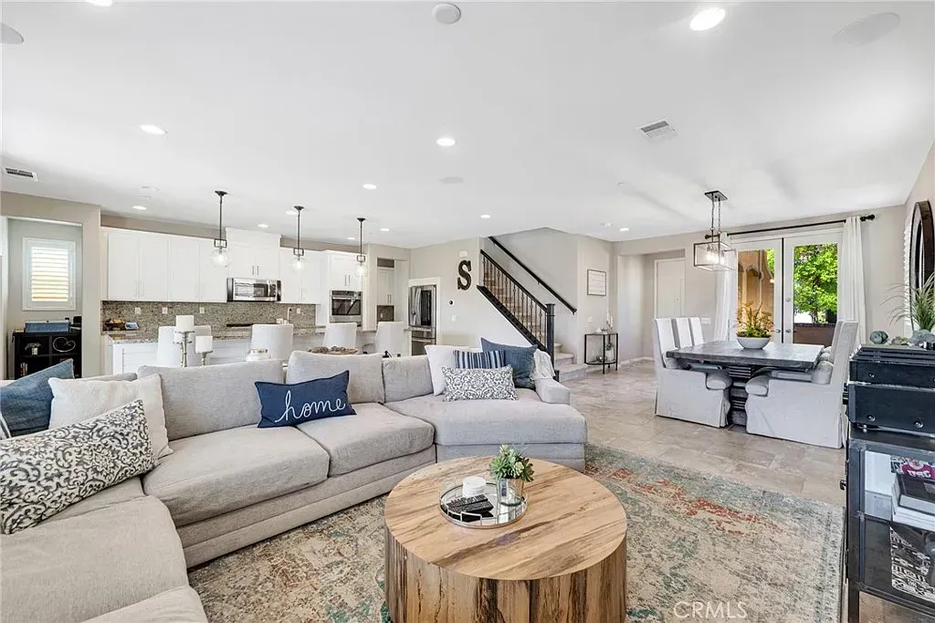 This Turn-Key Home is a MUST SEE! Nestled in the prestigious and exclusive gated community of West Hills-Valencia perfectly located on a PRIVATE CUL-DE-SAC. This modern and popular open floor plan of this beautiful two story home features a FULL BEDROOM which is perfect for a home office & FULL BATH DOWNSTAIRS. Upgraded large tile floors throughout. Chefs Kitchen with an oversized eat-in Center Island, Granite counters, Stylish cabinets, Pantry, and Stainless Steel appliances. Kitchen is part of the Great Room with a Cozy Gas Fireplace with Bose 5.1 surround sound upstairs and downstairs that is perfect ambiance to entertain guests. 2nd Floor features a large open loft, Walk-In Linen Closet with a large Laundry Room, 4 Bedrooms, Full Bath with double sinks. Enter the primary suite with the primary Bath that has double sinks, separate tub & shower, walk-in closet with a separate dressing area and a Balcony. Backyard is perfect for entertaining with a covered patio and grass area. More additional features include plantation shutters, ceiling fans, recessed lighting, energy efficient windows, tankless water heater, dual central A/C system, Nest Thermostats, EV Charging station 240V outlet in Garage, Google Home High Definition 4K cameras throughout the house and keyless entry. Partial Solar is a Huge Utility Savings. Resort Style Valencia Living at its finest! West Hills HOA has 3 Pools, walking distance to the Retreat Lodge Pool, Clubhouse, SportsPark, Playground, BBQ, Paseo Trails, PLUS Top rated West Creek Academy Elementary School and Rio Norte Jr High is walking distance. This beautiful home is in high demand and won’t last long—schedule your viewing today!